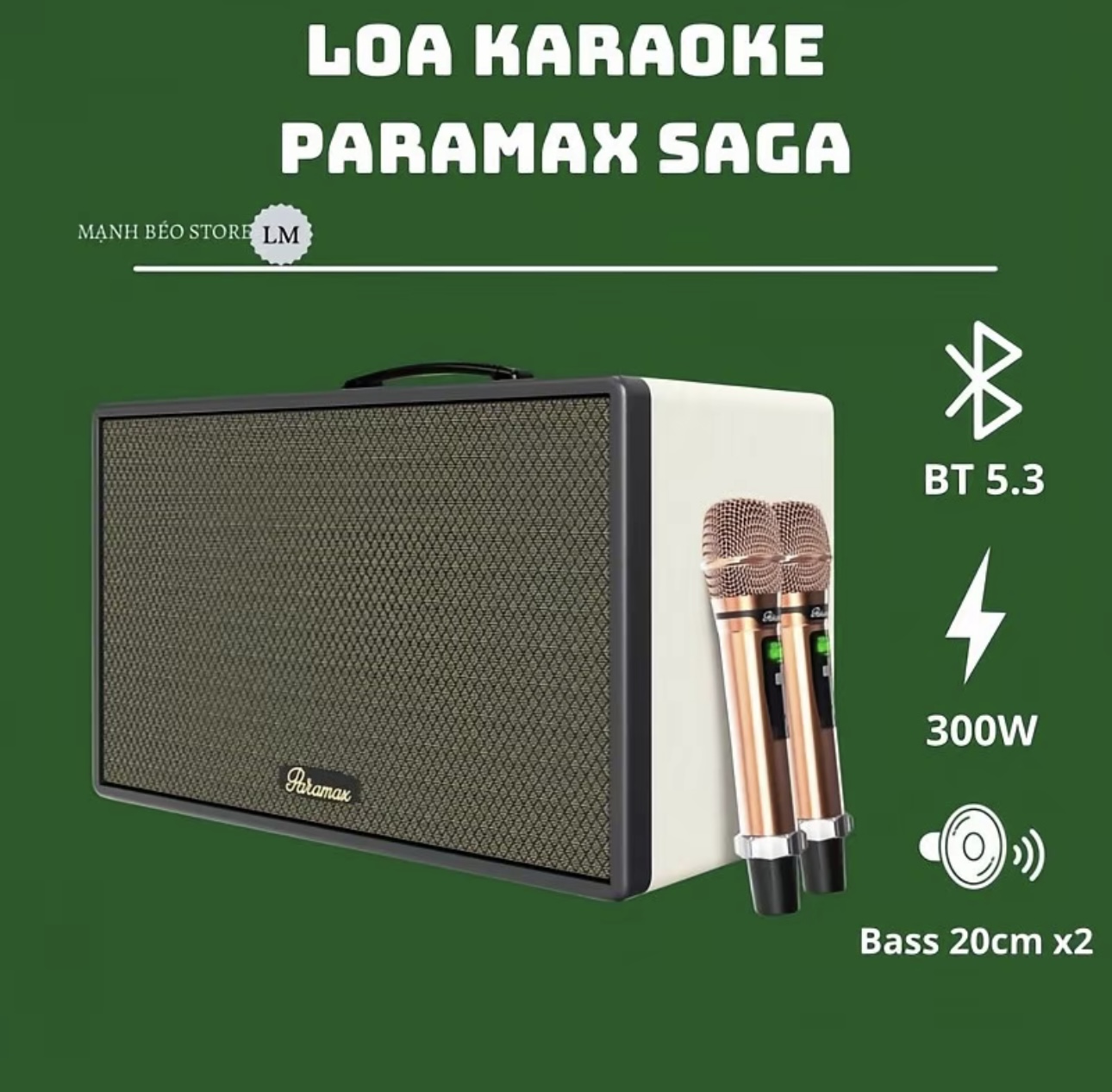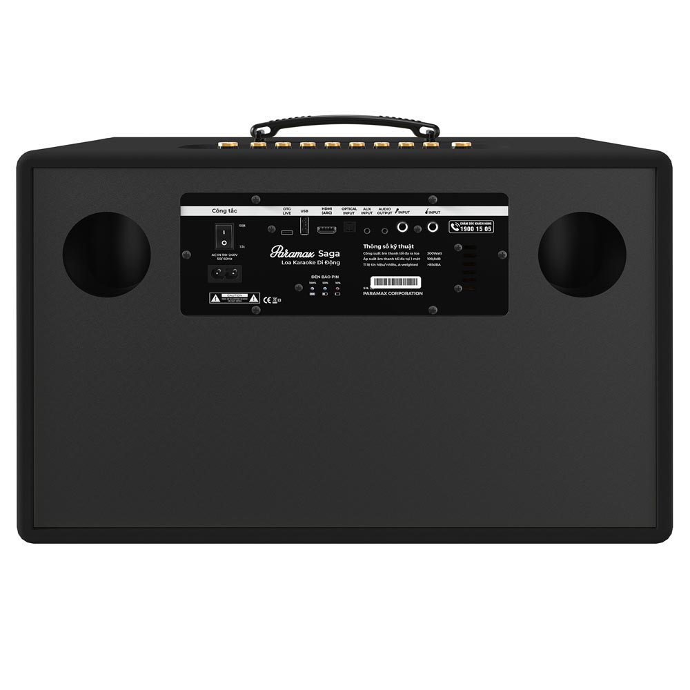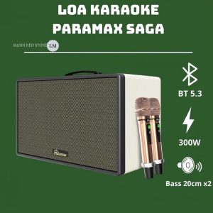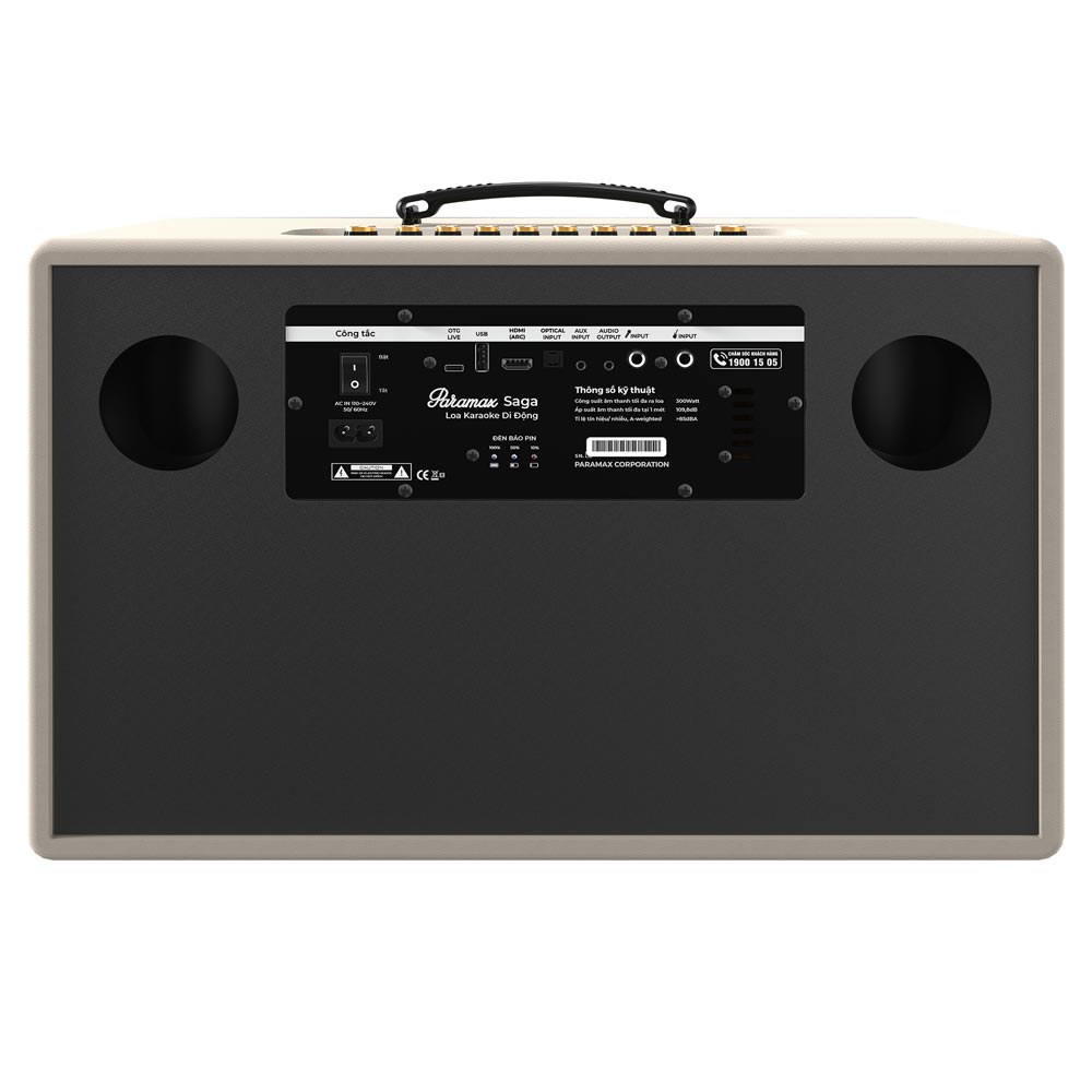 Loa karaoke di động PARAMAX Saga sở hữu 04 loa thành phần được kế thừa thiết kế từ các mẫu loa Hi-Fi EURO Series, gồm hai loa bổng 7.2cm và hai loa trung trầm kích thước lớn 20.3cm.