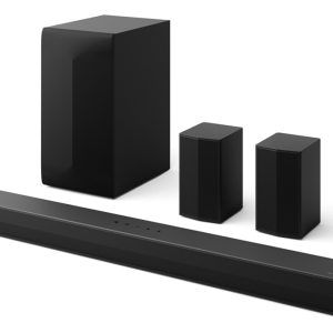 – Loa thanh hỗ trợ 5.1 kênh âm thanh với 1 loa chính, 1 loa sub, 2 loa vệ tinh.